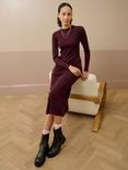 Brora Pure Cashmere Ribbed Hybrid Hooded Scarf, Garnet
