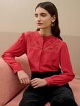 Brora Silk Lace Yoke Shirt, Tomato