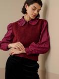 Brora Donegal Wool Aran Cable Knit Cardigan, Ruby