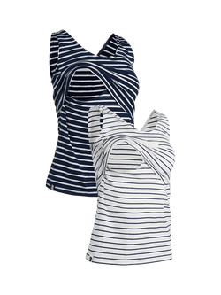 Lift Nursing Stripe Organic Cotton Blend Vest Tops, Pack of 2, Navy/White