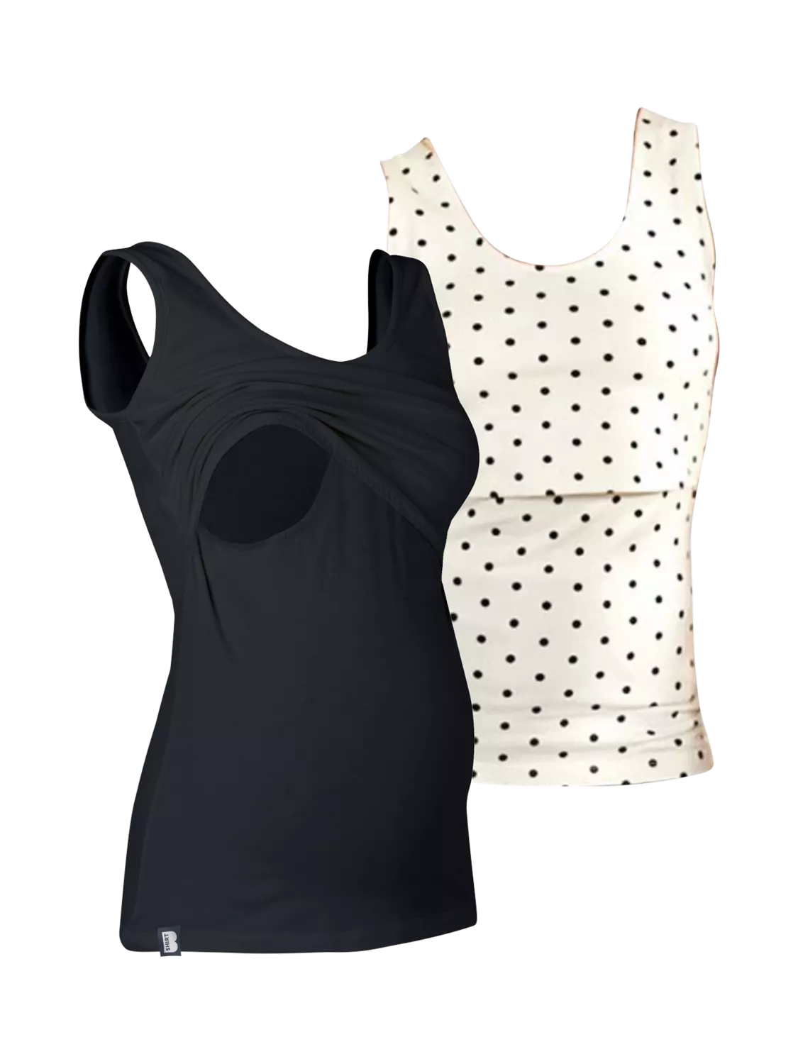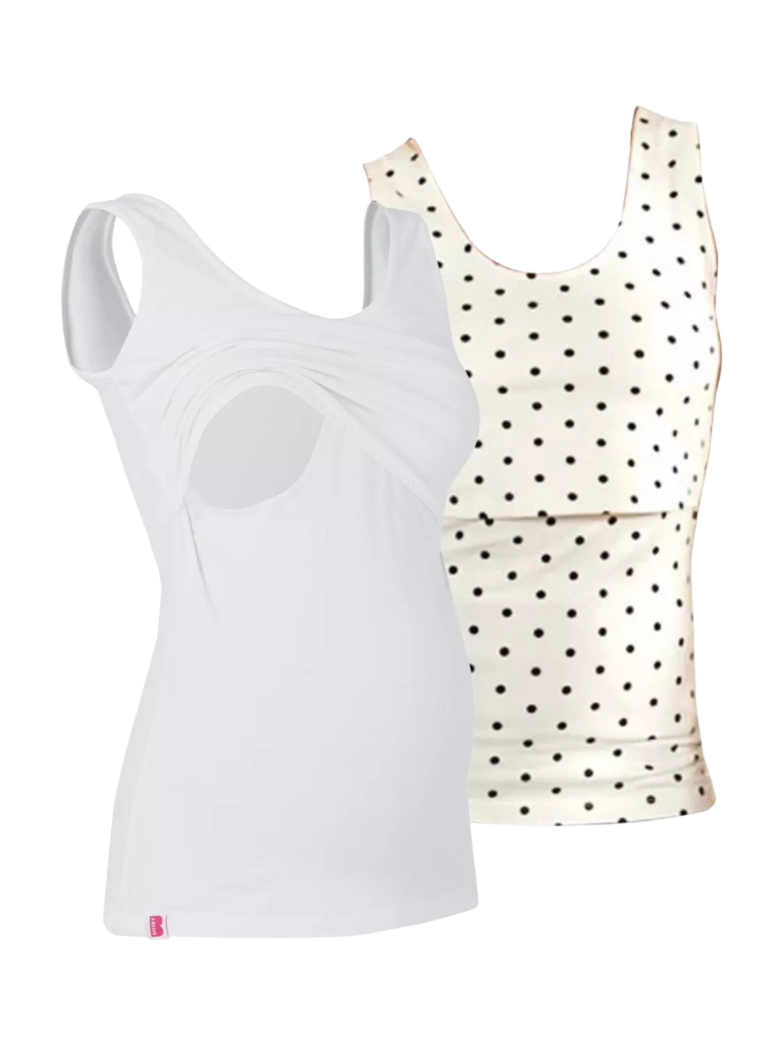 Bshirt Organic Cotton Blend Plain/Spot Lift The Flap Breastfeeding Maternity Vest Top, Pack of 2