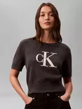 Logo Chunky Knit Short Sleeve Jumper, Charcoal Heather