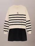 Calvin Klein Kids' Cotton Relaxed Striped Sweatshirt Dress, White/Black