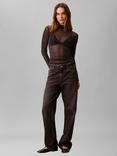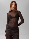 Calvin Klein Sparkle Mock Neck Sheer Top, Black