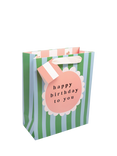 Stripe Birthday Flower Gift Bag, Medium, Green/Blue