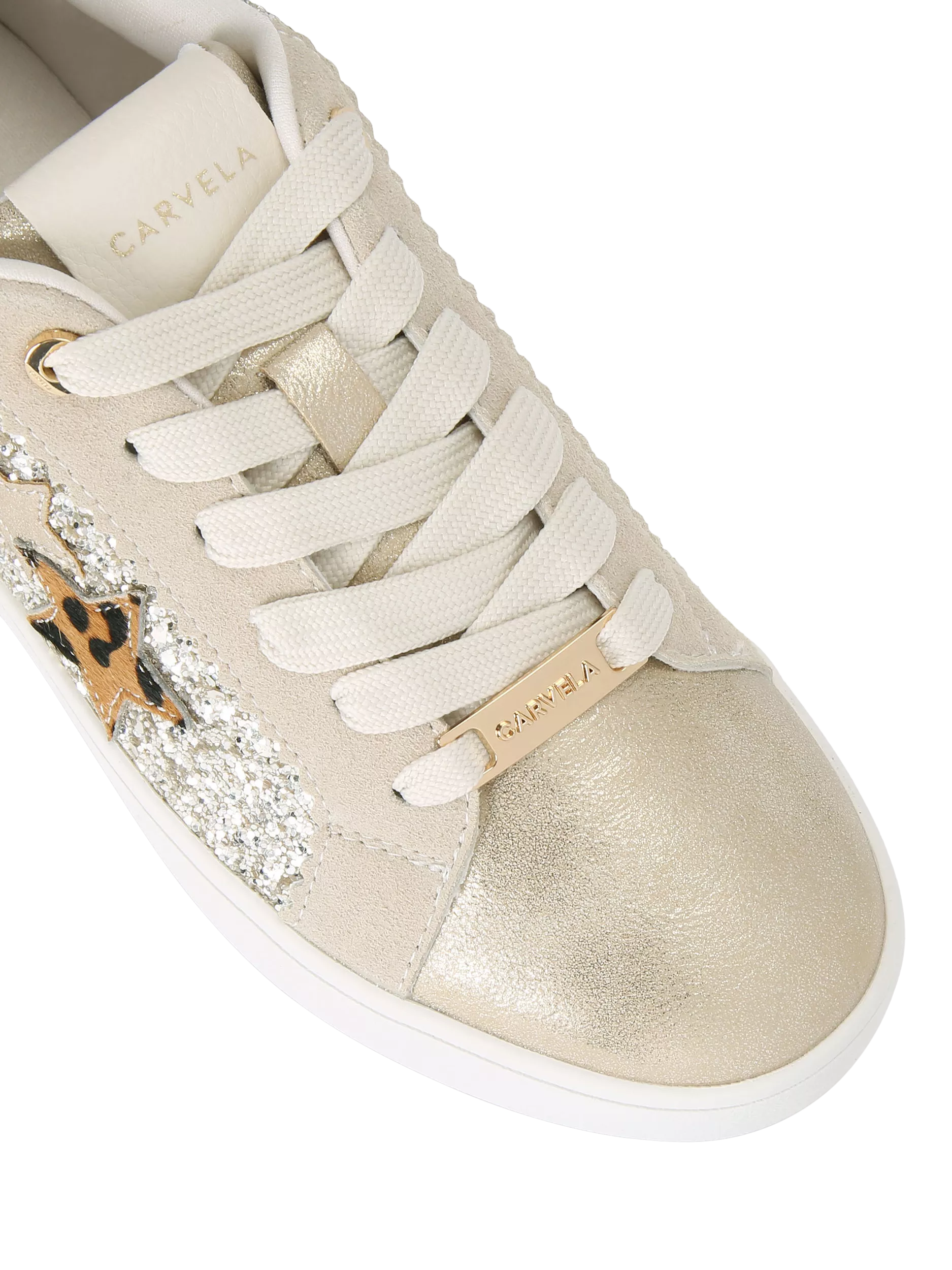 CarvelaGalassia Glitter lace Up Trainers£79.00Gold is availableNatural is availableSilver is available+ More colours availableOnline only
