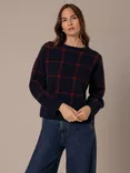 Windowpane Check Pure Wool Jumper, French Navy/Rust