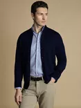 Funnel Neck Button Through Merino Wool Cardigan, Navy