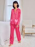 Petite Stripe Hearts Satin Button Through Long Pyjama Set, Bright Pink/Multi