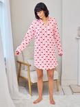 Stripe Hearts Satin Button Through Long Pyjama Set, Bright Pink/Multi