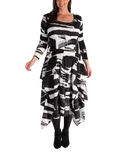 chesca Scribble Print Layered Midi Dress, Black/White