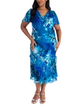 chesca Foliage Print Bodycon Midi Dress, Blue/Multi