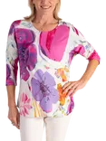Spring Flowers Curved Hem Top, White/Multi