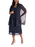 Beaded Sequin Chiffon Shawl, Navy/Gunmetal