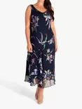 Iris Floral Print Devoree Sleeveless Midi Dress, Navy/Multi