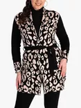 Leopard Cardigan With Tie Belt, Black/Cream