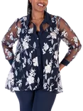 Mesh Floral Embroidered Long Sleeved Shirt, Navy/Multi