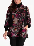 Abstract Geometric Print Contrast Panels Jacket, Black/Peony