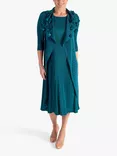 Chiffon Flower Detail Pleated Dress, Jade