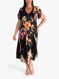 Floral Print Midi Dress, Black/Multi