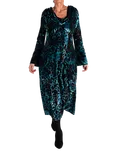 Jardin Velvet Filigree Floral Midi Dress, Teal/Black