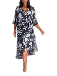 Leaf Satin Burnout High Low Midi Dress & Bolero Jacket, Navy/Silver