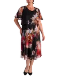 Orchid Print Layered Chiffon Dress, Black/Multi
