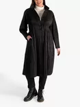 Lightweight Quilt Pleated Long Coat, Black
