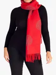 Tree Print Reversible Tassel Scarf, Red/Grey