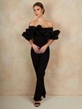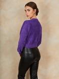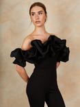 Puff Sleeve Jacquard Jumpsuit, Navy