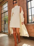 All-Over Knit Mini Dress, Cream