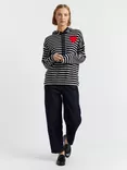 Chinti & Parker Cashmere Blend Stripe Heart Design Long Sleeve Breton Hoodie, Navy/Cream