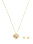 Crystal Heart Necklace and Earring Set, Gold