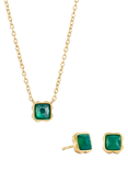 COEUR DE LION Semi-Precious Stone Pendant Necklace and Stud Earring Set, Gold, Green Agate/May