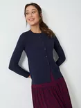 Crew Neck Pure Merino Wool Cardigan, Navy Blue