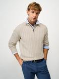 Crew Clothing Kids' Cotton Cable Zip-Neck Jumper, Stone