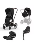 Cybex Priam Pushchair, Carrycot & Cloud T PLUS i-Size Car Seat with Base T Bundle, Rose Gold/ Sepia Black