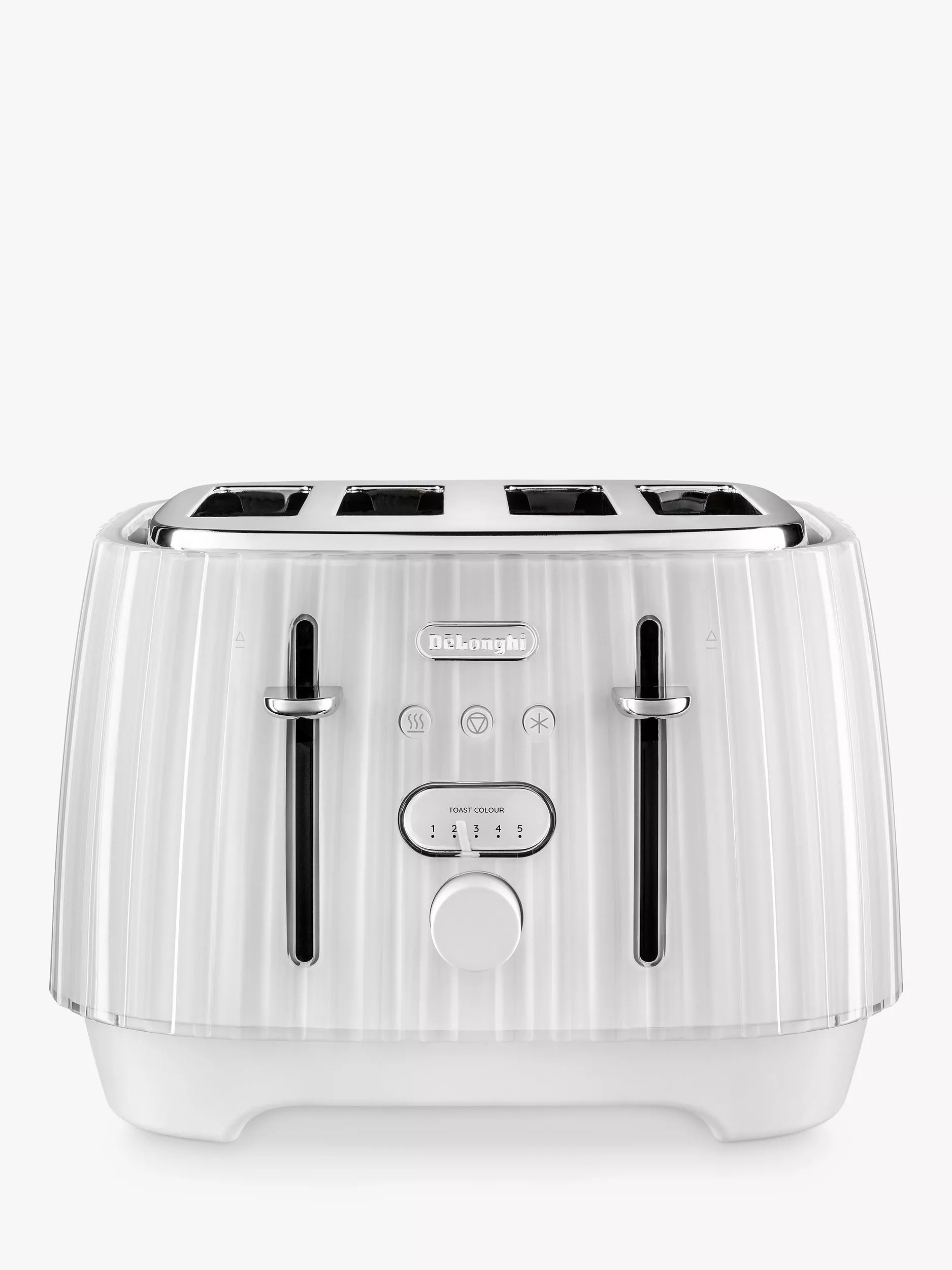 De'Longhi Eclettica CTY4003 4 Slice Toaster, White£49.99 – £59.99Payment plans availableView this product in other colours by selecting one of the following:This colour is availableThis colour is availableThis colour is unavailableCompareSelect for product comparison, De'Longhi Eclettica CTY4003 4 Slice Toaster