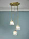 Email when available, Laura Ashley Whitham 3 Light Cluster Fluted Glass Ceiling Pendant Light, Antique BrassLaura Ashley Whitham 3 Light Cluster Fluted Glass Ceiling Pendant Light, Antique Brass£170.00
