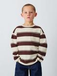 John Lewis Kids' Stripe Patch Pocket Top, Brown White Stripe