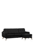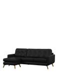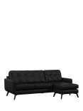 John Lewis Barbican RHF Chaise Leather Sofa, Light Leg, Matt Black