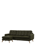 John Lewis Camden LHF Leather Corner Sofa, Dark Leg, Demetra Green
