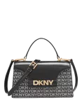 Avril Leather Flap Satchel Bag, Black Logo/ Black