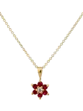 E.W Adams 9ct Gold Birthstone Blossom Pendant Necklace, Ruby/July