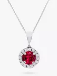 18ct White Gold Ruby & Diamond Cluster Pendant Necklace