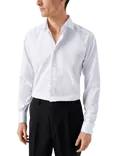 Cotton Twill Slim Fit Cutaway Collar Shirt, White