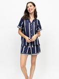 Chancery Stripe Button Through Short Pyjama Set, Chancery Navy