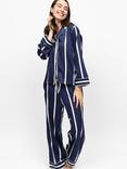 Chancery Stripe Button Through Long Pyjama Set, Navy/White