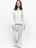Victoria Button Through Long Pyjama Set, Silver Grey