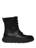 F-Mode Stitch Warm Tumbled Leather Lace Up Ankle Boots, Black